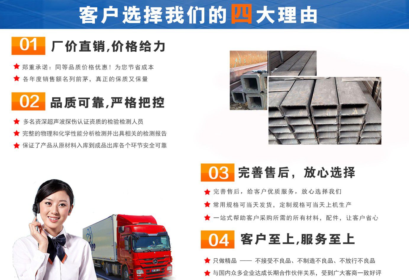 無錫盛灝特鋼有限公司長(zhǎng)期銷售Q355B方矩管,鍍鋅方矩管,大口徑方矩管,厚壁方矩管,無縫方矩管等各種方管產(chǎn)品!產(chǎn)品廣泛應(yīng)用于鋼結(jié)構(gòu)建筑(鋼管混凝土、管樁、管桁架,橋梁、海上作業(yè)平臺(tái)、港口碼頭建設(shè)、電視通訊鐵塔、電力鐵塔等鋼結(jié)構(gòu)管)。壓力管道(石油、天然氣、煤漿等輸送)、機(jī)械制輥等領(lǐng)域。 公司自創(chuàng)辦以來,一直堅(jiān)持“誠(chéng)信合作,共同發(fā)展”的經(jīng)營(yíng)理念。 一直以來我們本著“以誠(chéng)相待,以信為本,互利互惠,共同發(fā)展”的長(zhǎng)期方針,充分發(fā)揮現(xiàn)貨資源優(yōu)勢(shì)為您提供“可靠的產(chǎn)品、過硬的質(zhì)量、完善的服務(wù)”,歡迎廣大新老客戶前來洽談業(yè)務(wù)。 公司以“至誠(chéng)至信,雙利雙贏”為根本宗旨,堅(jiān)持科技興企的發(fā)展策略,恪守商規(guī),創(chuàng)新進(jìn)去,贏得聲譽(yù),贏得了市場(chǎng),得到了社會(huì)各階層的認(rèn)可。公司以雄厚的實(shí)力、可靠的質(zhì)量、儲(chǔ)存鋼管門類齊全、庫存量大之優(yōu)勢(shì),本著守法、守信、創(chuàng)新的理念,打造精品,發(fā)展鋼管多元化品種,滿足客戶各種需求,以低廉的價(jià)格、熱情的服務(wù)面向國(guó)內(nèi)外客戶,歡迎鋼管界同仁加盟!我們?yōu)榭蛻籼峁┲艿降姆?wù) ! 公司為客戶提供以下服務(wù) 服務(wù)三保: 保證質(zhì)量、保證時(shí)間、保證數(shù)量?! 》?wù)宗旨: 雄厚的實(shí)力、優(yōu)質(zhì)的產(chǎn)品、低廉的價(jià)格、周到的服務(wù)?! ∨慵鏍I(yíng),一支起定。...